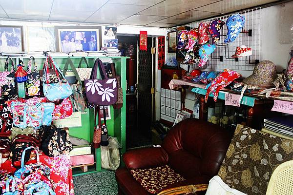 店內也有一些用客家花布製作的手工布包或日用品。